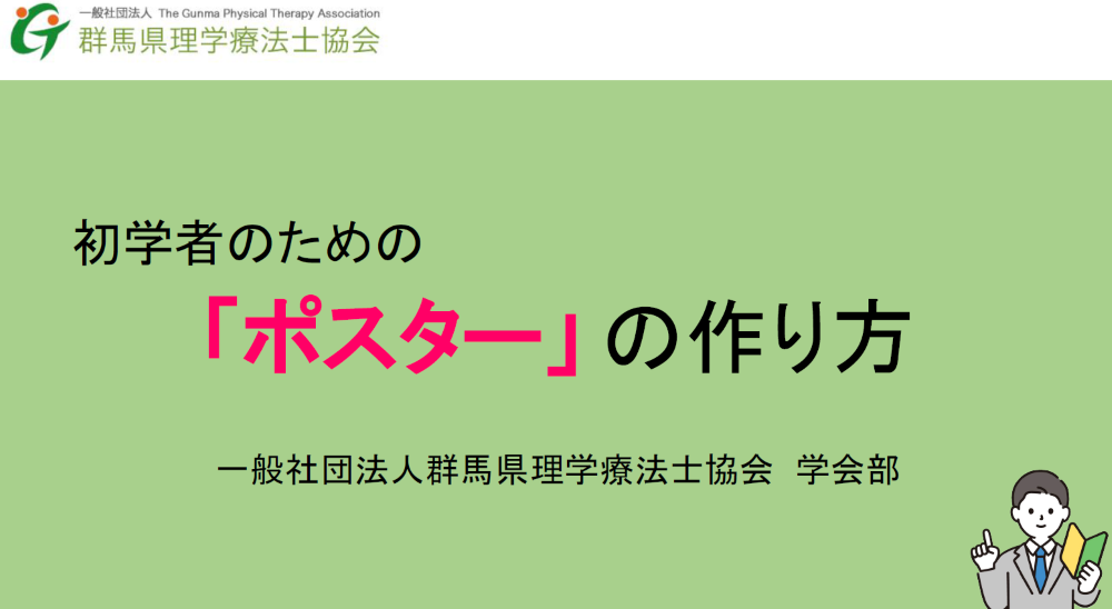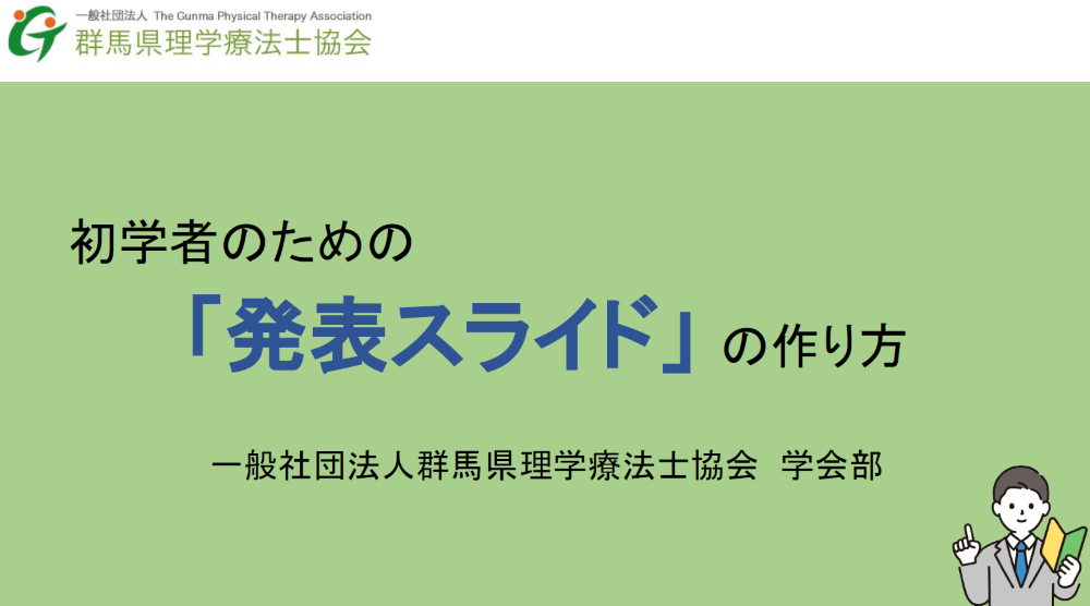 演題登録に向けて一歩踏み出していただきたいという願いを込めて、群馬県理学療法士協会 学会部では、「学会発表のすゝめ」という資料を作成しました。
